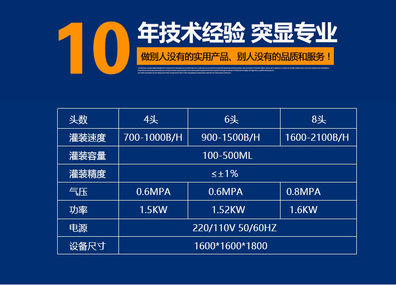 設備特點: 1、快速清洗、便于調整、容積缸體動作無極調速,適合不同規(guī)格、不同物料的灌裝。充填量一次調整完畢,每個容積缸體可分別微量調節(jié),灌裝精度高且一致性好。接觸物料的材料為316不銹鋼、硅橡膠、符合QS規(guī)范。 2、進口減速電機無極調速控制灌裝柱塞缸,不僅適合各種膏體,亦適合醬料。 3、進口電磁離合器和電磁制動器配合動作,消除慣性,灌裝精度高。 4、人機界面與PLC通訊,調試設備或更換品種只需在屏幕上設定。進瓶、定位、灌裝充填、出瓶均自動作業(yè)。 5、灌裝時瓶子不到位、瓶子堵塞活出液管沒有插進瓶子時設備將自動保護,排除后繼續(xù)作業(yè)。