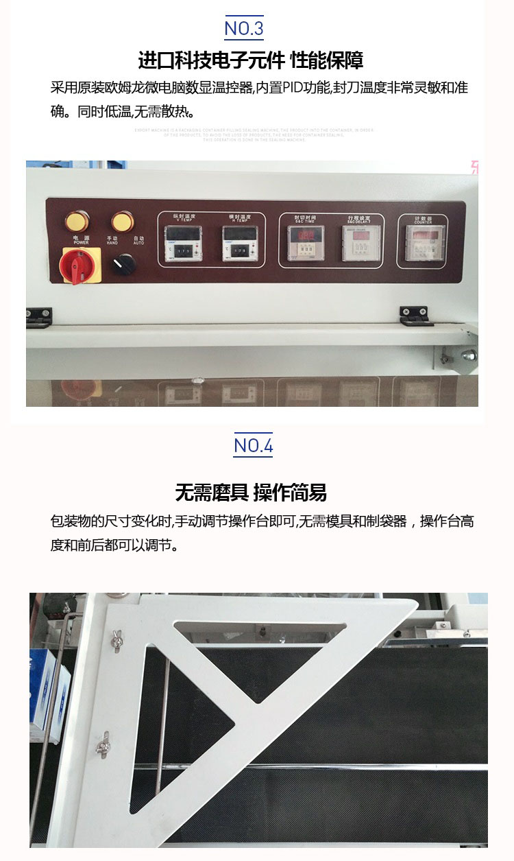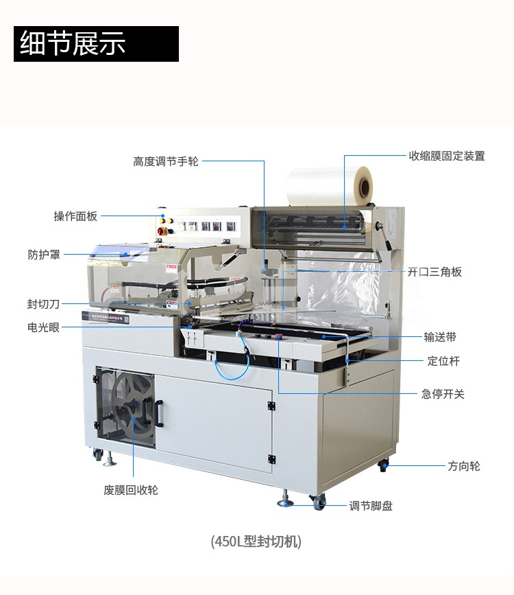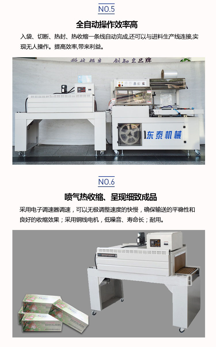 全自動套膜收縮機(jī)是由全自動450L封切機(jī)和熱收縮機(jī)組成,入袋、切斷、熱封、熱收縮一條線自動完成,還可以與進(jìn)料生產(chǎn)線連接,實現(xiàn)無人操作。提高效率,帶來利益。全自動化封切收割,適用于各種物品的套膜及收縮,生產(chǎn)效率高,品質(zhì)有保證。