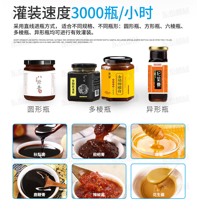 隨著我國包裝行業(yè)的飛速發(fā)展,近年來我國的蜂蜜食品行業(yè)逐步發(fā)展為我國國民經(jīng)濟(jì)中增長較快的,關(guān)注蜂蜜安全和身體健康的今天,基于綠色環(huán)保理念日益成熟的必然趨勢,為了能夠滿足社會的需求整套智能型瓶裝蜂蜜灌裝機(jī)械設(shè)備向自動化、智能化、高質(zhì)量、高效的方向邁進(jìn)。伴隨著每個領(lǐng)域都逐漸步入到全自動智能的時(shí)代,與以往的設(shè)備來說蜂蜜灌裝機(jī)設(shè)備已經(jīng)是發(fā)生了翻天覆地的改變其操作更加簡略,一鍵操作,不只提高了企業(yè)的生產(chǎn)制造功率,也為企業(yè)降低了辛勤勞動本錢的花銷。可以很好的避免不必要的麻煩發(fā)生同時(shí)蜂蜜灌裝機(jī)得到更多客戶的信任。